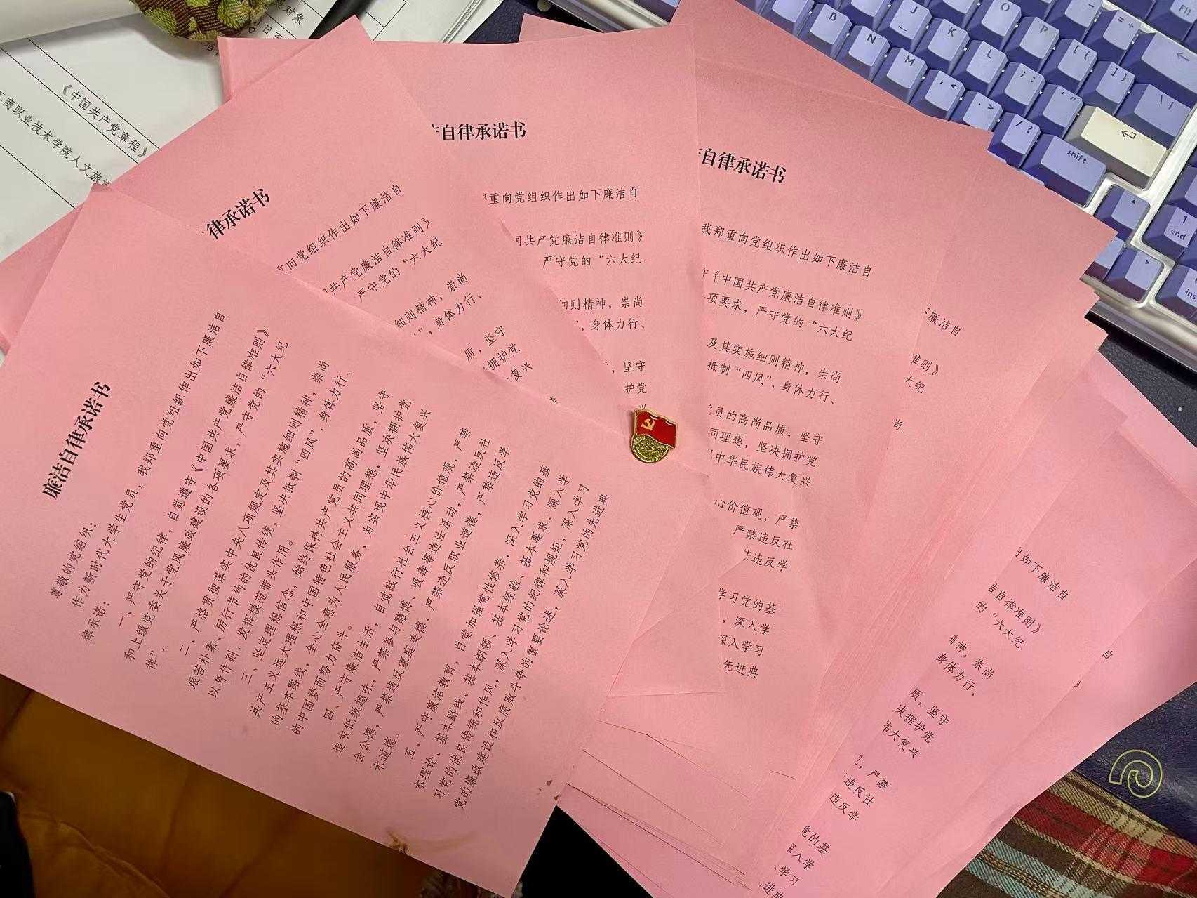 在随后的廉洁自律承诺书签订环节,毕业生党员们郑重地在承诺书上签下自己的名字。“这不仅是简单的签名,更是一份沉甸甸的责任。”2022级旅游管理专业学生党员表示,这份承诺书她会一直珍藏,时刻提醒自己不忘入党初心。