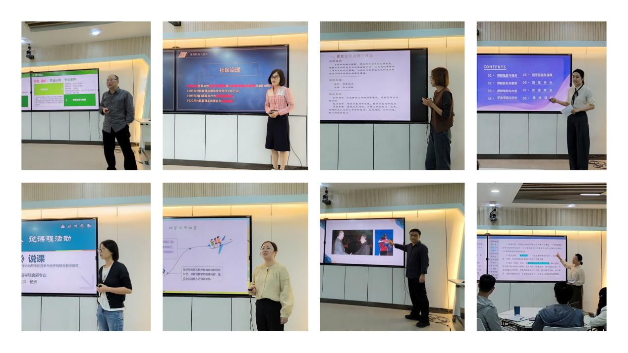 活动现场,beat365酒店管理与数字化运营、旅游管理、会展策划与管理、现代文秘和社会工作五大专业的各课程负责人分别就各自课程进行了详细的介绍和解读。每位课程负责人从课程性质与任务、课程目标与要求、课程结构与内容、学生考核与评价、教学实施与保障、课程特色、资源开发以及建设目标等八个方面进行了深入剖析,充分展示了各自课程的独特之处和亮点。