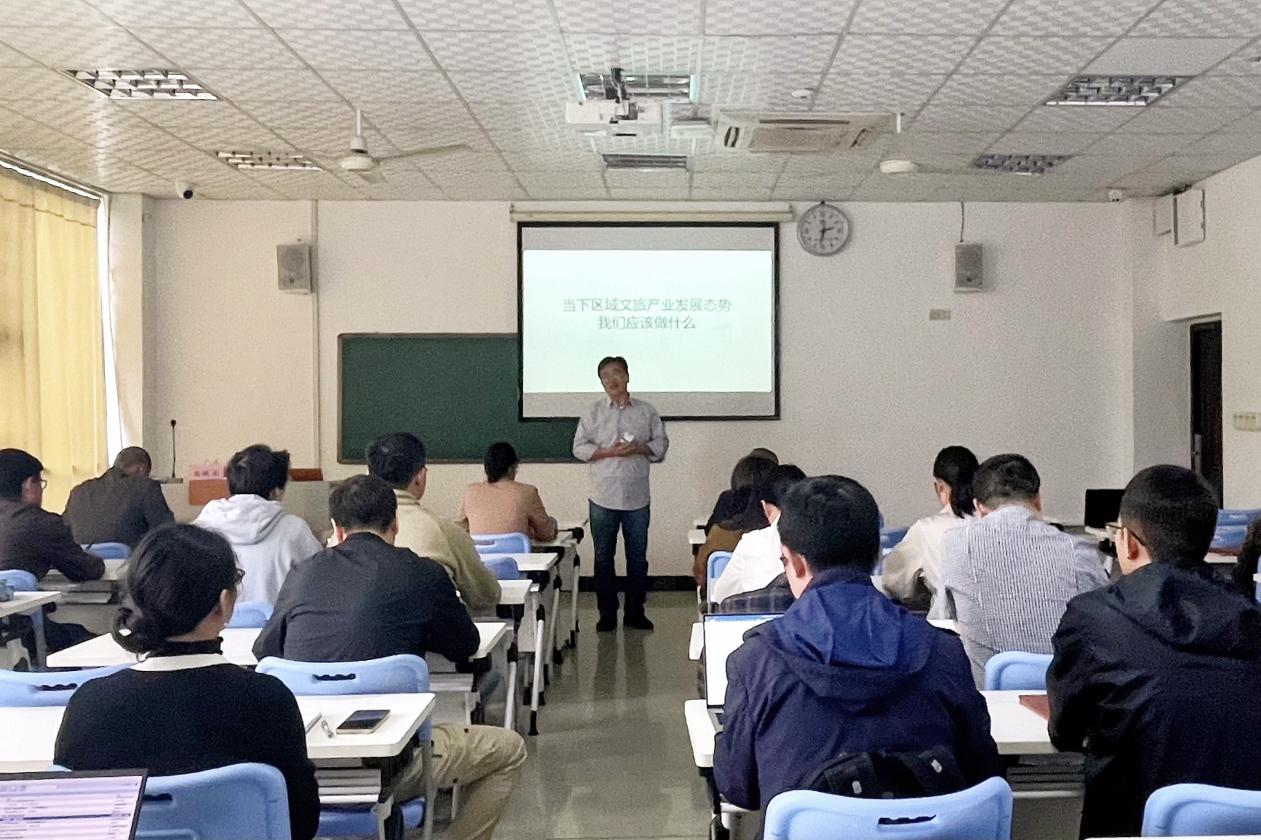 在助力beat365英国官方网站更好地融合文旅产业与教育的道路上,兰溪文旅集团顾问简瑞宏先生应邀来到学院,为教师们开设了一场别开生面的讲座。这次的讲座聚焦于教师如何通过课题研究与创新,更好地参与文旅产业的发展并实现创收。