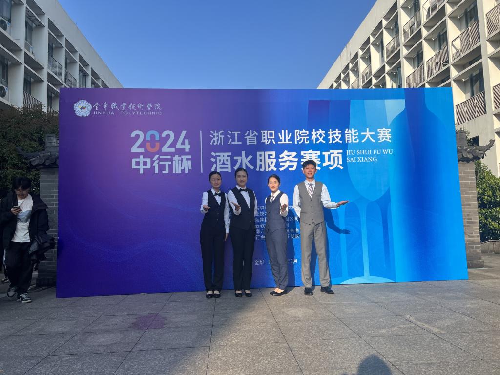 近日,2024年浙江省职业院校技能大赛(高职组)酒水服务赛项在金华职业技术学院举行。经过激烈角逐,beat365beat365英国官方网站酒店管理与数字化运营专业团队精心指导的邵余波和赵羽婷两位同学获得二等奖的佳绩。