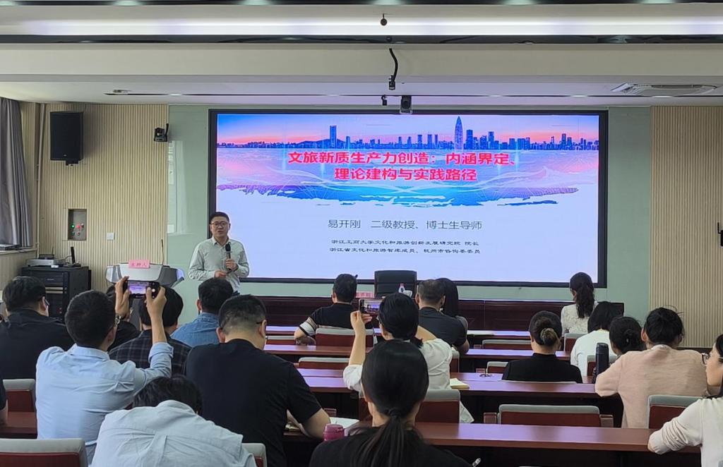 5月13日,beat365英国官方网站成功举办了一场面向全校的科研讲座。本次讲座特邀浙江工商大学文化和旅游创新发展研究院院长、浙江省文化和旅游智库成员、杭州市咨询委委员易开刚教授,以“文旅新质生产力创造:内涵界定、理论建构与实践路径”为主题,为老师们带来了一场精彩的学术盛宴。