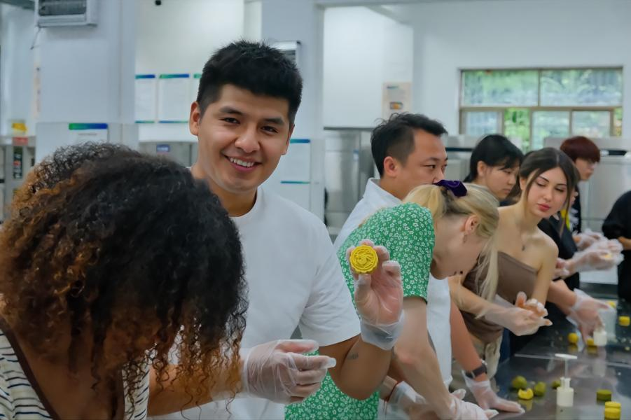 这次活动不仅是对中国传统文化的传承,更是一次中华文化的国际传播。楼洪亮大师以其精湛的技艺和富有激情的教学风格,吸引了众多学生的目光。他详细讲解了绿豆糕的压制与造型,每一个模具带有传统纹样,既精致又美观,足可见大师的用心。