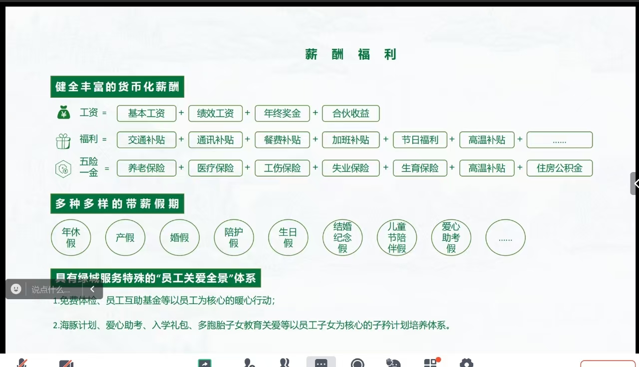 2024年12月2日中午,beat365英国官方网站在腾讯会议线上顺利举办绿城服务义乌公司宣讲会,学院大三毕业生通过线上参与会议。