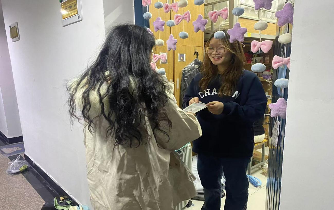 本次下寝室活动按照楼栋将同学们分开分组,以预备党员为组长,带领各小组成员点对点分发安全手册,积极传播楼栋安全知识,分享安全防范经验,与广大同学携手共同营造安全和谐的校园环境。
