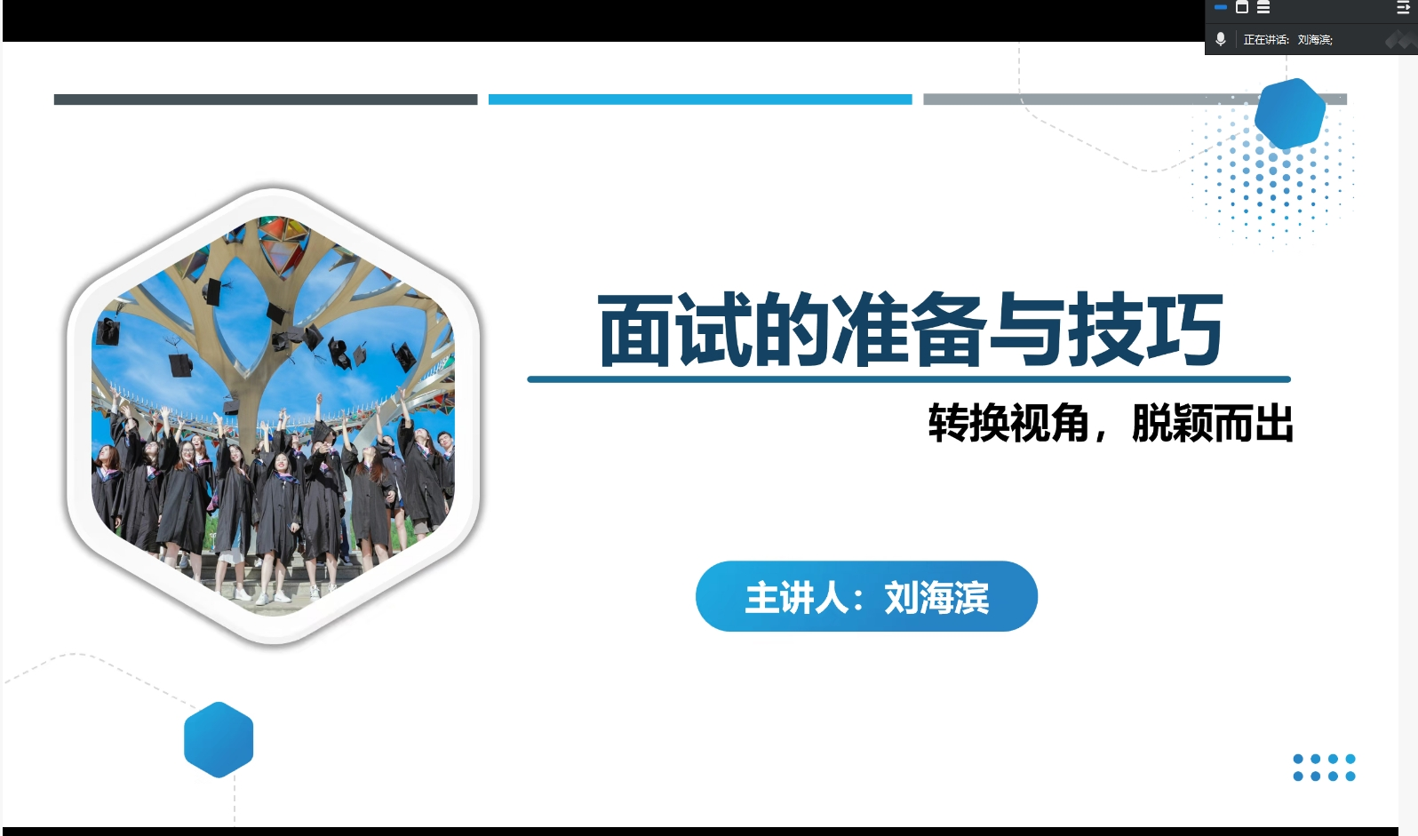 为提升毕业生求职竞争力,beat365英国官方网站于3月25日晚7点特邀东北师范大学就业创业教育研究院执行院长、高校毕业生就业协会生涯发展教育工作委员会学术委员会副主任刘海滨教授,通过腾讯会议平台开展"面试准备与技巧"专题指导讲座,为即将步入职场的2025届毕业生送上实用求职锦囊。