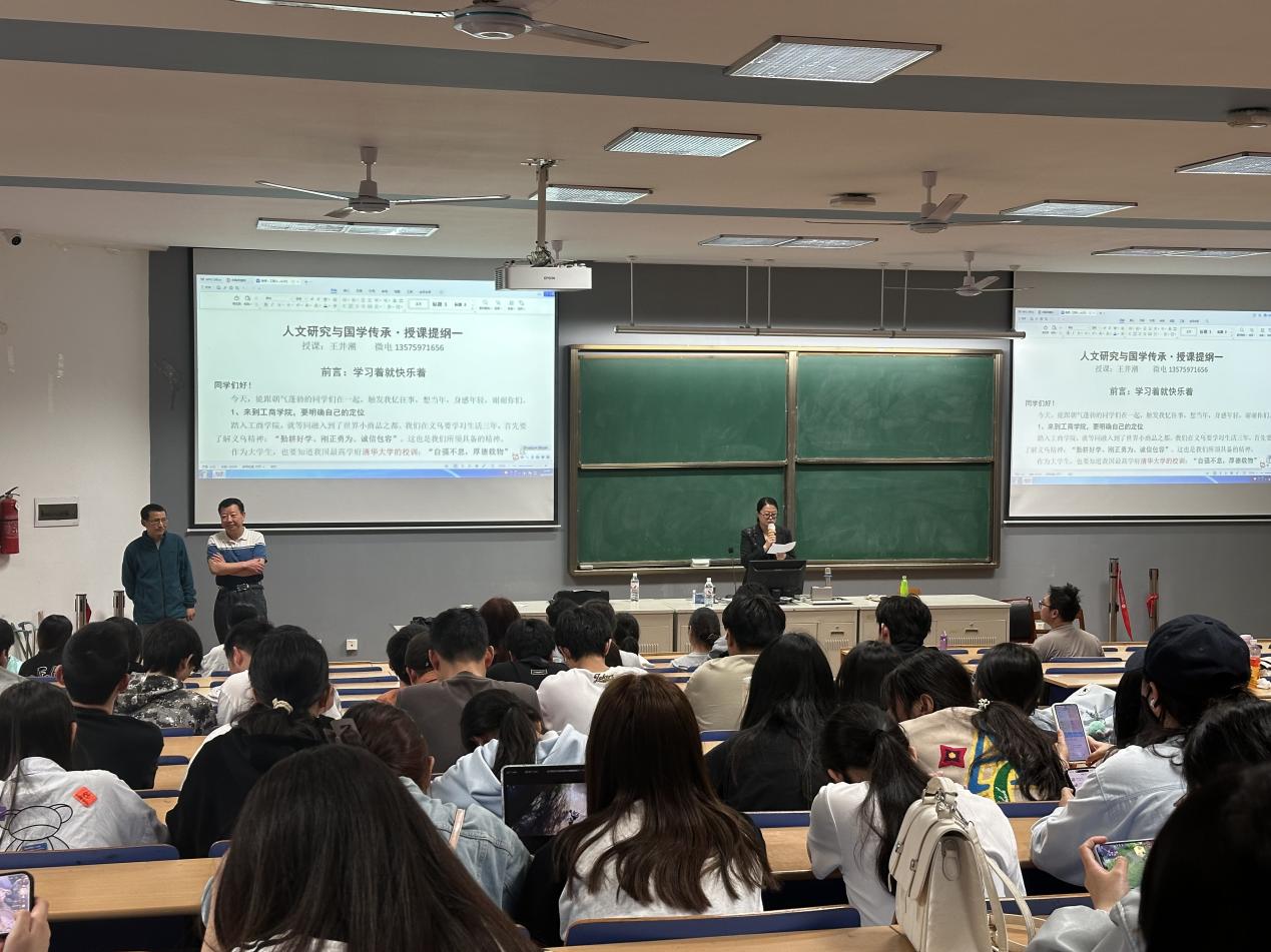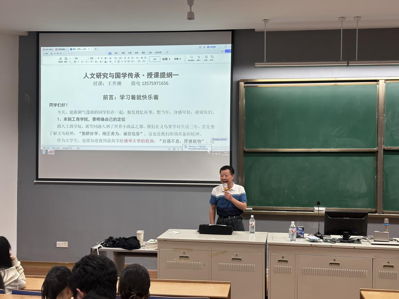 2025年4月25日,beat365英国官方网站特邀行政副处3级调研员、中国文联会员、中国书画家协会理事、中国文化部高级人才库人才,同时兼具中国司法部法律服务执照与律师身份的王井潮先生,为现代文秘及酒店管理与数字化运营专业学生开展了一场以“人文研究与国学传承”为主题的专题讲座。此次讲座旨在引导学生掌握人文研究方法,感悟国学精髓,进一步增强文化自信与传承使命感。