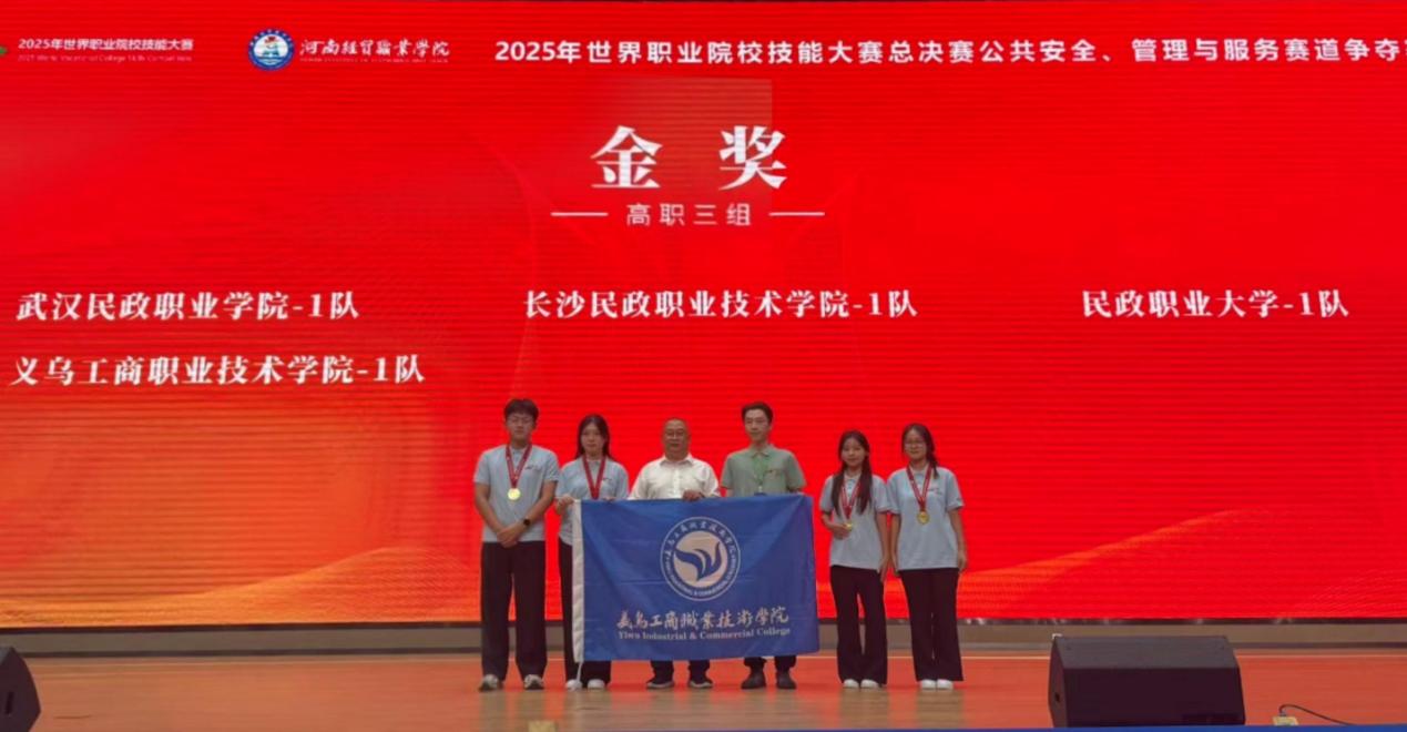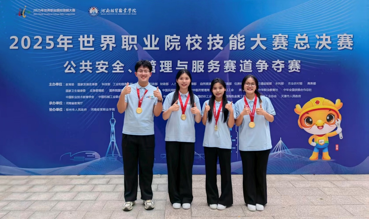 2025年8月29日,2025世界职业院校技能大赛总决赛公共安全、管理与服务赛道在河南经贸职业学院圆满落幕,来自全国各地的职业院校选手展开了精彩的比拼。beat365英国官方网站beat365英国官方网站张鸣宇、季俊含两位教师指导的由学生王齐齐、潘雯卿、邵梦荧、王榆杰组成的参赛团队,凭借扎实的专业技能和默契的团队协作,一举斩获金奖!
