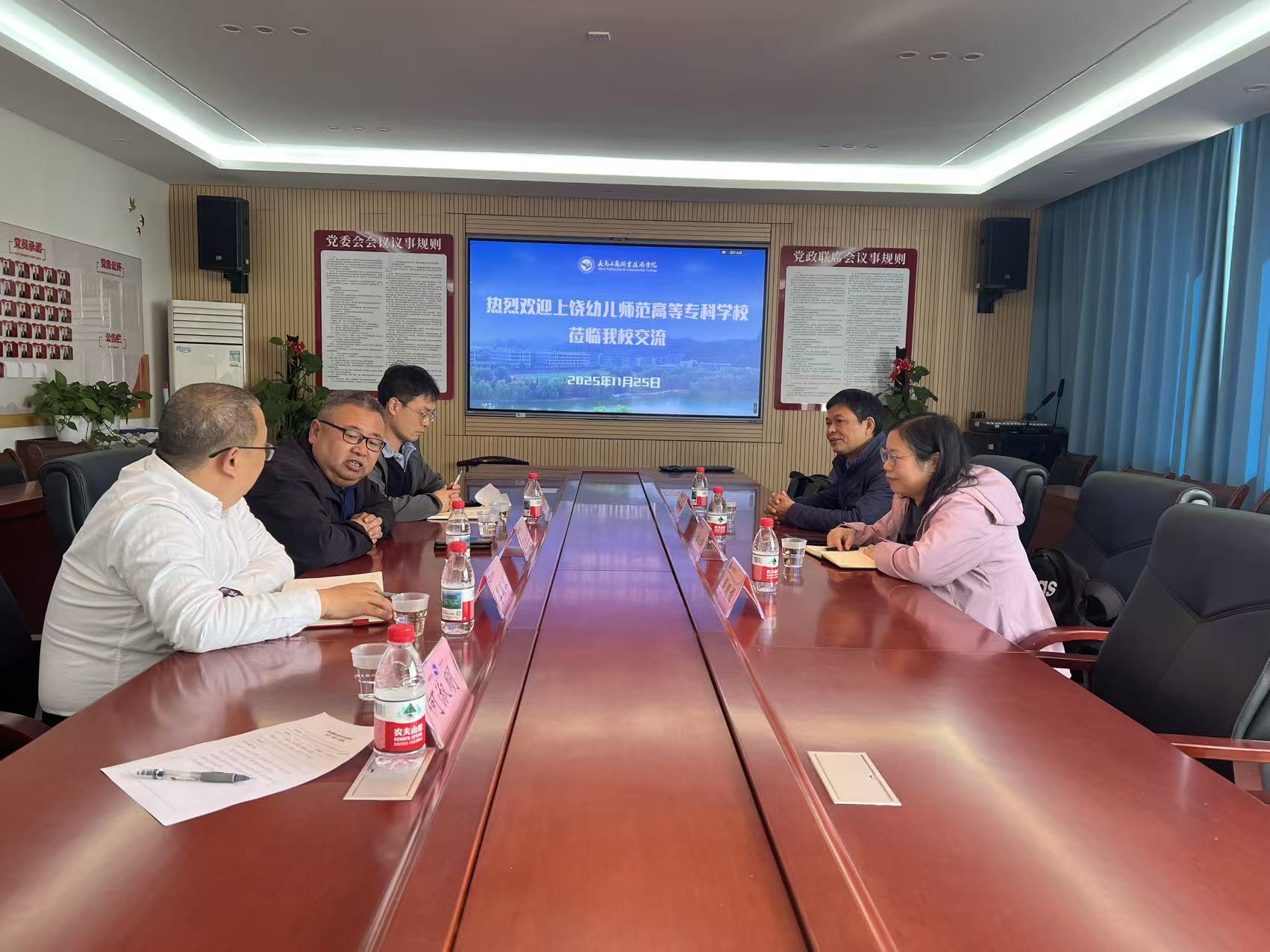 2025年11月25日,上饶幼儿师范高等专科学校现代教育技术学院党总支书记吴修原一行莅临beat365,就建设“电子商务”专业和新建“酒店管理与数字化运营”专业进行深入交流,旨在借鉴beat365专业建设经验,推动该校新兴专业的科学布局与高质量发展。