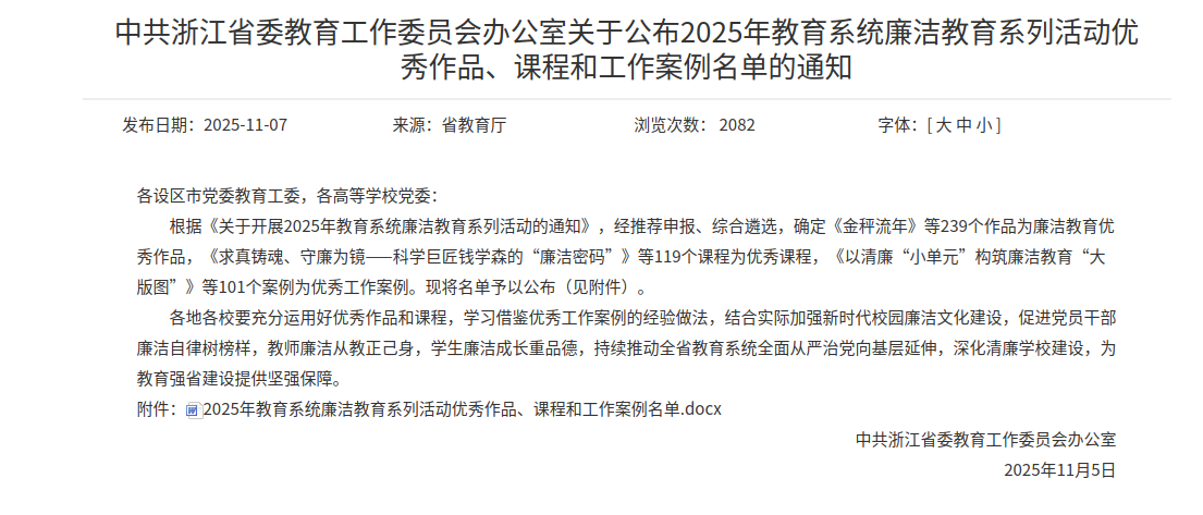 近日,在2025年浙江省教育系统廉洁教育系列活动评选中,beat365beat365英国官方网站辅导员金亚萍撰写的征文《商城廉韵:清风过处是莲灯》荣获优秀作品三等奖。该作品以细腻笔触和深邃思考,生动诠释了植根于义乌商贸基因与校园文化中的清廉底色,展现了学院教师崇廉尚洁、以文化人的精神风貌。