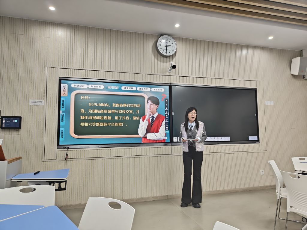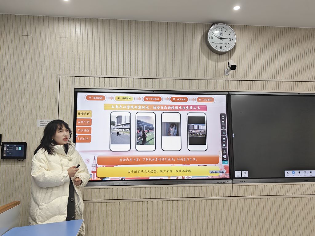 钟可嘉老师针对国际班学生的学情特点,借助数字人语音翻译功能讲解小红书短视频制作,助力留学生跨越语言障碍,掌握跨文化传播技巧。