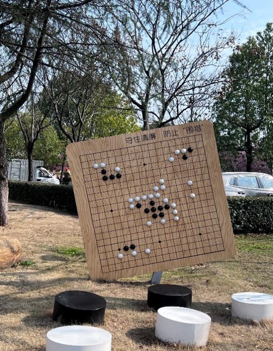 实践团的第三站,来到了有着“城市之中,尘世之外”之称的横塘公园,它位于“义乌发展经验”的总结地横塘村。该公园分“历史”“当代”“未来”三个区域,围绕义乌“莫名其妙、无中生有、点石成金”的精神布景,其中的旋转楼梯、交错长廊、仿古石亭、各式花海都让实践团体验到了原汁原味的乡村慢生活。 同学们了解到,水系是横塘公园的一大亮点。中国美术学院风景建筑设计研究总院利用香溪河道改造工程,将河水一路引至公园处,再利用高差通过公园内各条水系回流。同时,公园内建设有多处近水平台、木栈道等,方便游客近距离欣赏湖水。公园内湖面倒映着银水榭,穿过银水榭来到古民居,犹如穿越时空一般。