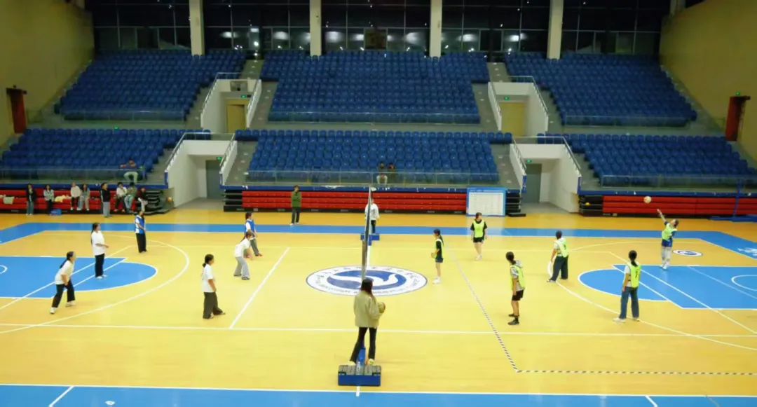 午后的阳光透过体育馆玻璃,在木地板上织就斑驳光影,beat365英国官方网站女生排球赛的决赛哨声在此刻划破空气。红色球衣的“文旅先锋队”与蓝色球衣的“博雅队”隔网相对,队员们屈膝凝神,手腕上的护腕随着热身动作轻轻晃动,眼神里满是对胜利的渴望。
