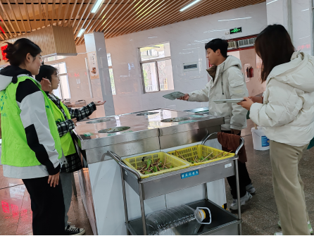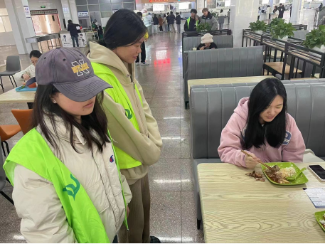 在食堂内,成员们身穿志愿服积极引导同学们按照个人食量适量取餐,避免因取餐过多而造成的浪费。同时,他们还向同学们介绍了各种节约粮食的方法和技巧,如合理搭配菜品、剩余食物打包带走等。